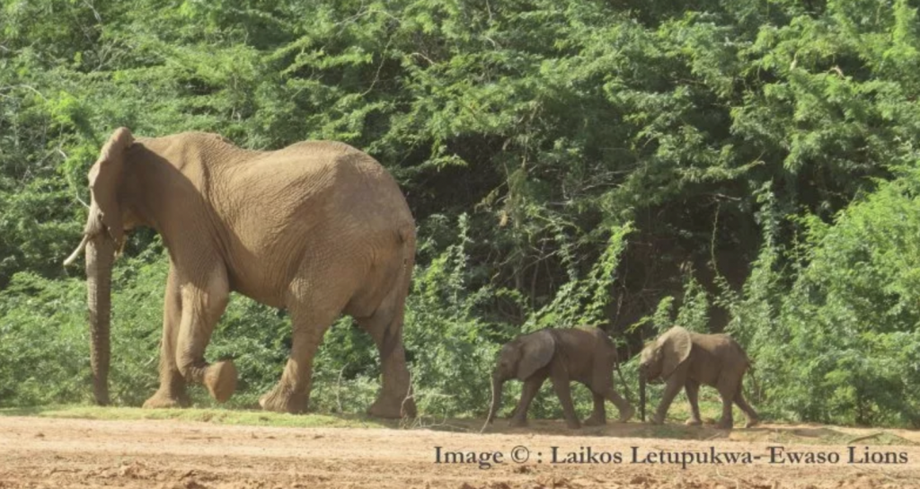 Iain Douglas-Hamilton, founder of Save the Elephants said; “Elephant twins are very rare. In fact they rarely live as twins as usually one or more die. It’s a big stress on the mother to have two calves to feed.” He also mentioned that over the years he has seen a few other twins born but none that survived. With the recent rainfall in the area, he is confident that the mother and the two calves will thrive. We all hope so!